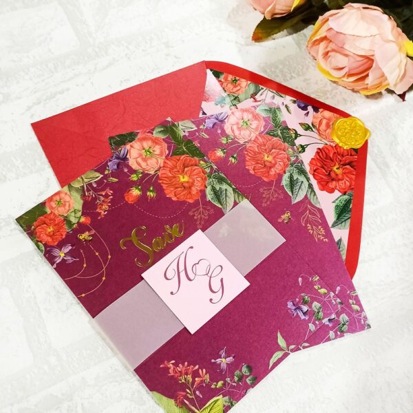 溫柔優雅的你可以選擇紫色或粉色的流蘇燙金喜帖,若你是喜愛較活潑的配色可以選擇橘調或淺綠色調的明信片式喜帖。