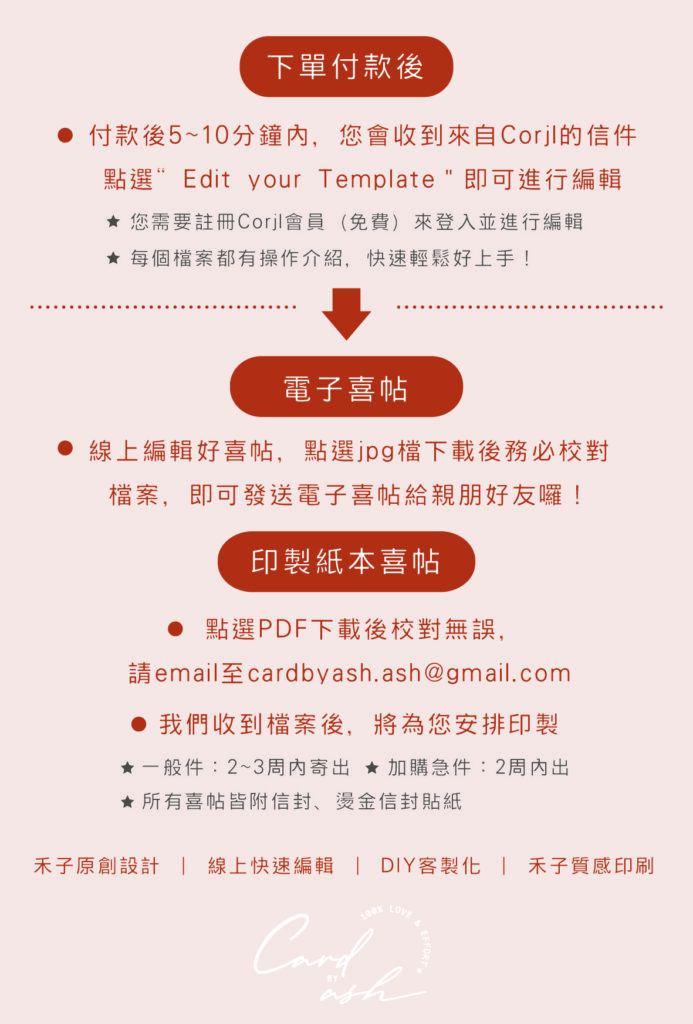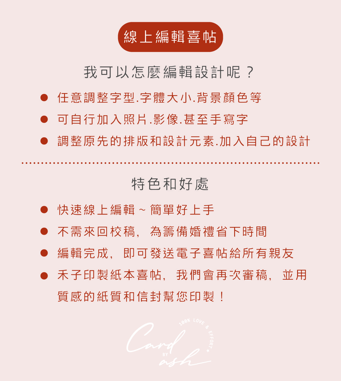 - 凡購買此系列喜帖,即可線上編輯DIY