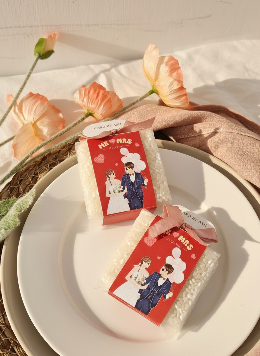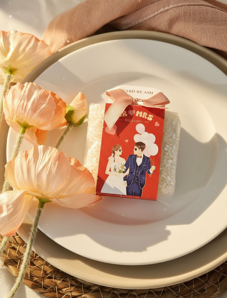復古愛心-似顏繪喜米, 婚禮小物, 似顏繪婚禮小物, 客製化喜米, 日式粉彩