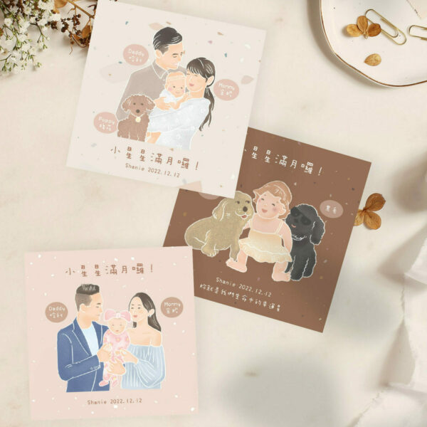 6色磨石子- 似顏繪彌月卡,客製化彌月卡