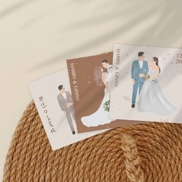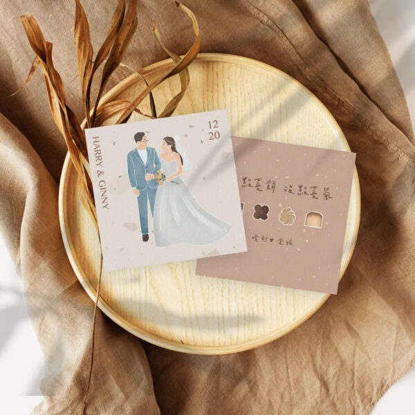 6色磨石子- 客製化人像插畫喜餅卡,似顏繪喜餅卡