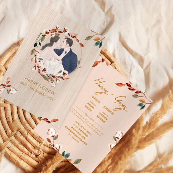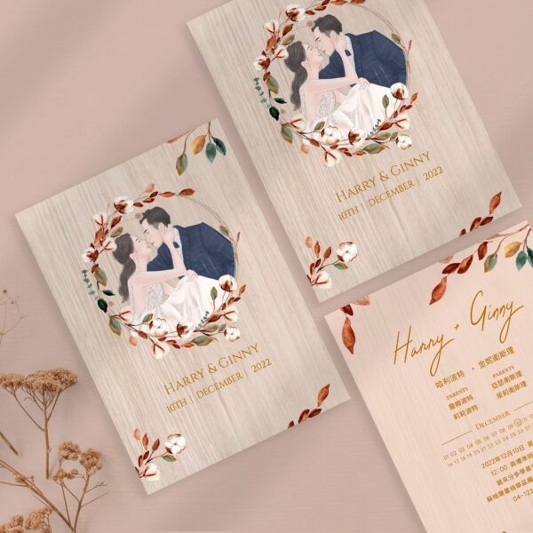 客製化人像喜帖-木質調棉花田.似顏繪喜帖