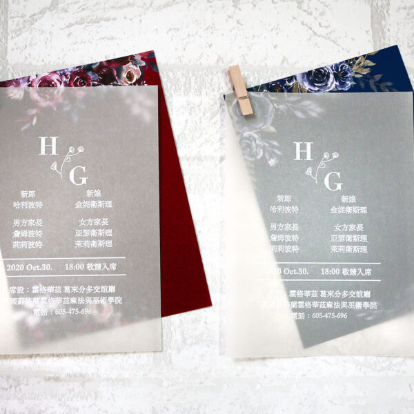 - 內容:描圖紙+喜帖+小木夾/迴紋針+信封+貼紙